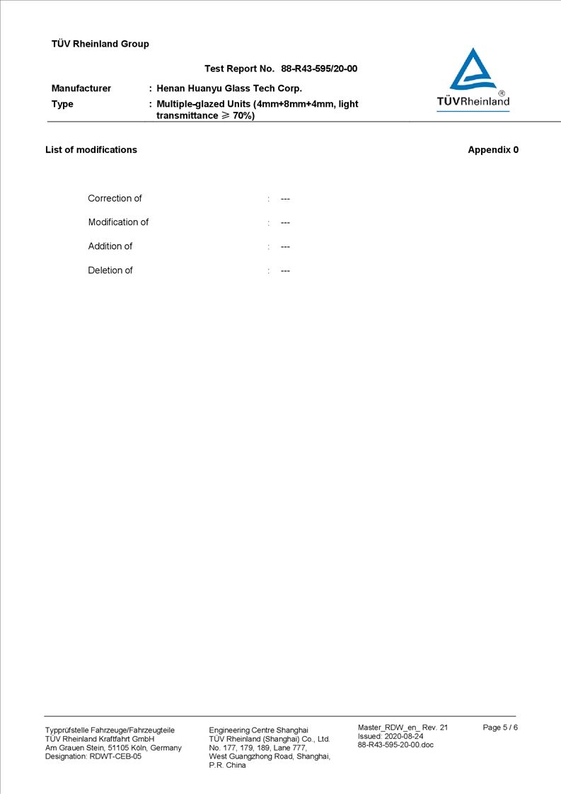河南環(huán)宇玻璃科技股份有限公司年產(chǎn) 5 萬平方米驗收報告公示