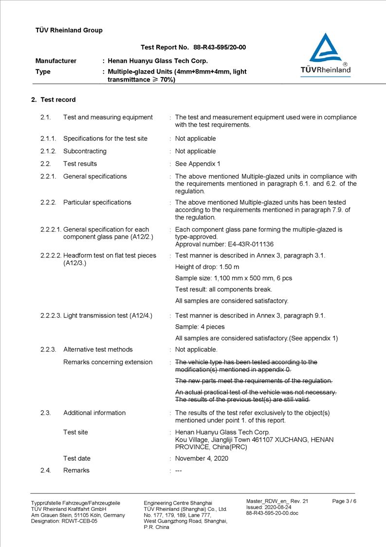 河南環(huán)宇玻璃科技股份有限公司年產(chǎn)35萬平方米驗收報告公示